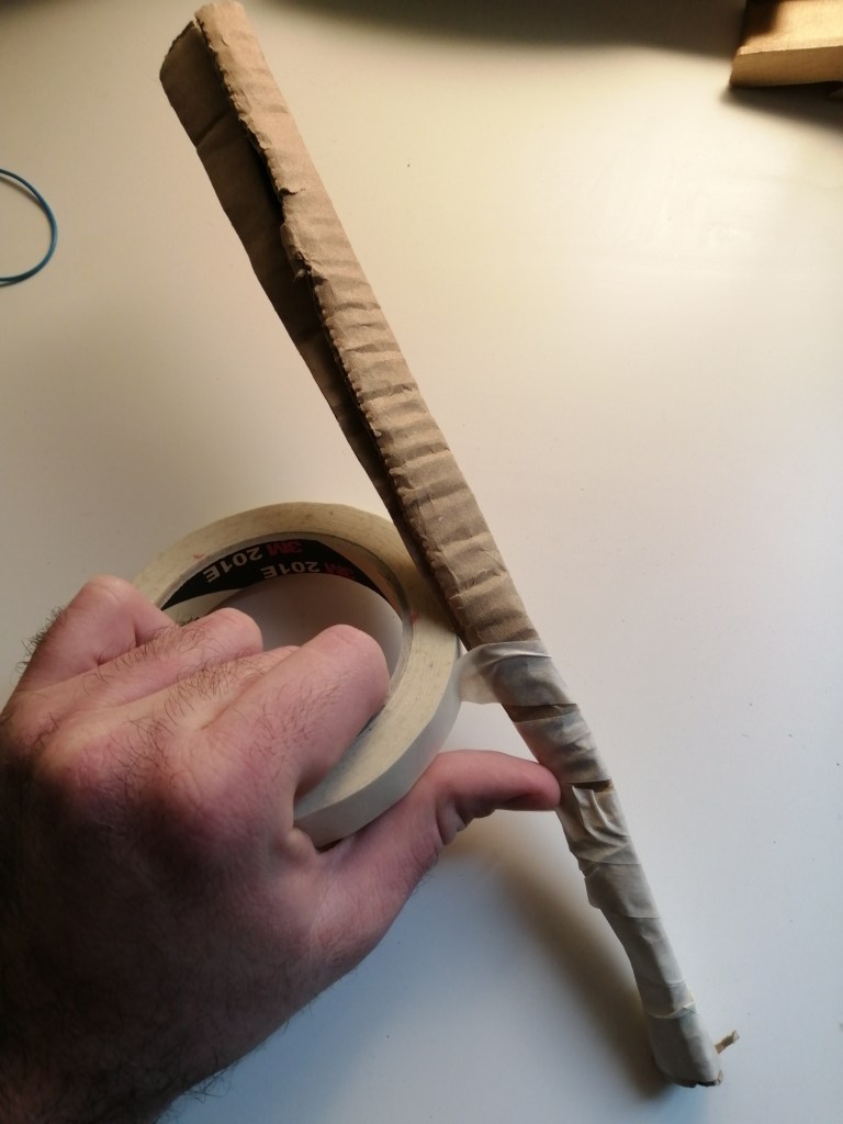Una volta che avete arrotolato il cartone, potete avvolgere il tutto con lo scotch carta, oppure con il cartoncino colorato. Sconsiglio l’uso di scotch normale perché non vi si può colorare sopra.
